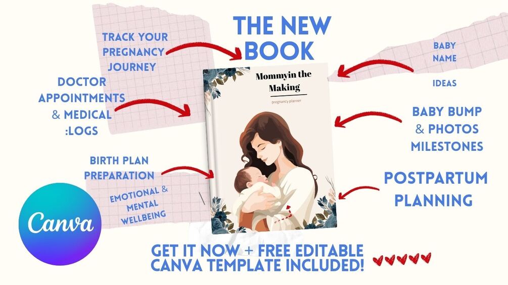 Elegant Pregnancy Planner – Printable PDF Track your pregnancy month by month: doctor visits, baby kicks, hospital checklist, meal plans, and more — all in one simple, organized planner. Perfect for first-time moms or as a thoughtful gift!